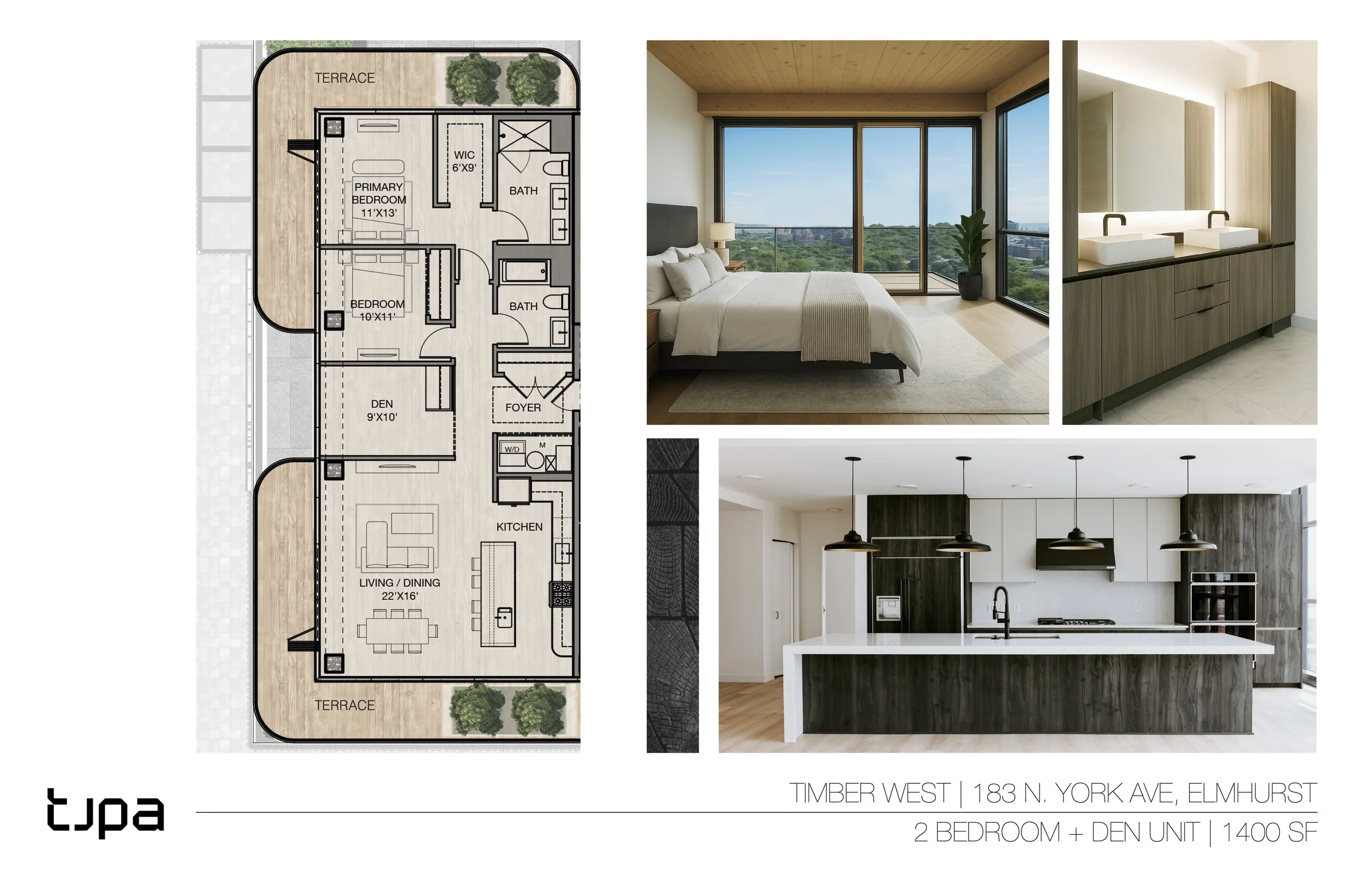 Revitalizing the building while honoring its historic character was essential, balancing respect for the past with the opportunity to realize its full potential. The 183 N. York development demonstrates how modern, warm, deco-inspired form-making can harmonize nature with an urban context.